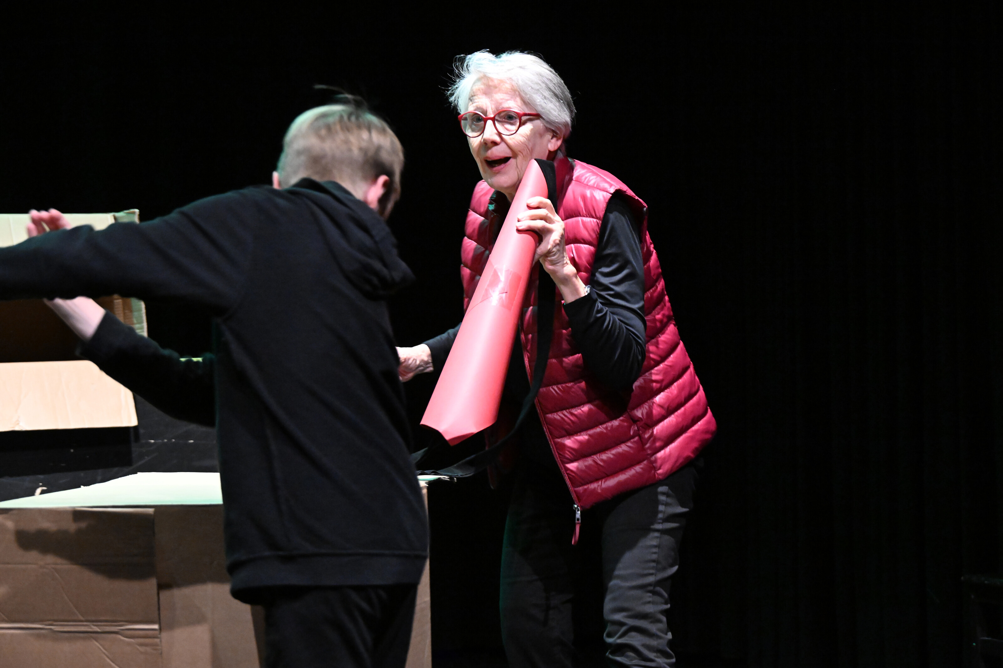17 Schüler*innen, eine Lehrerin, 6 Senior*innen und ein pensionierter Blindenhund präsentierten ausgehend vom verbindenden Themenfeld «Erinnerungen» das Gemeinschaftswerk «Fundbüro der Erinnerungen». Der Präsentation ging eine dreimonatige Spiel-, Experimentier- und Recherchephase voraus. Aus den dabei entwickelten Fundstücken entstand das Theaterstück. Dabei ging es um Erinnerungen, die verschwinden, die vergessen werden, die im Fundbüro abgegeben oder aber an eben diesem Ort wieder gefunden werden. Und manch eine Erinnerung weckte in direkter Weise neue Erinnerungen.