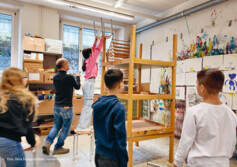 Dass künstlerisches Schaffen sehr vielfältig sein kann, nicht immer todernst sein muss und auch Spass machen darf, stand im Mittelpunkt des Ateliers von Parvez. In seinem Atelier entstanden Zeichnungen, kleine Skulpturen und ein grosses gemeinsames Bild. Ein weiterer Teil der Ausstellung besteht aus Video-Interviews von und mit Schüler*innen, in denen sie ihre individuellen Arbeiten und ihren Beitrag zum Entstehungsprozess reflektieren. Ergänzt werden die Interviews mit Statements der Kunstschaffenden und Lehrpersonen sowie Einblicken in die Ateliers.