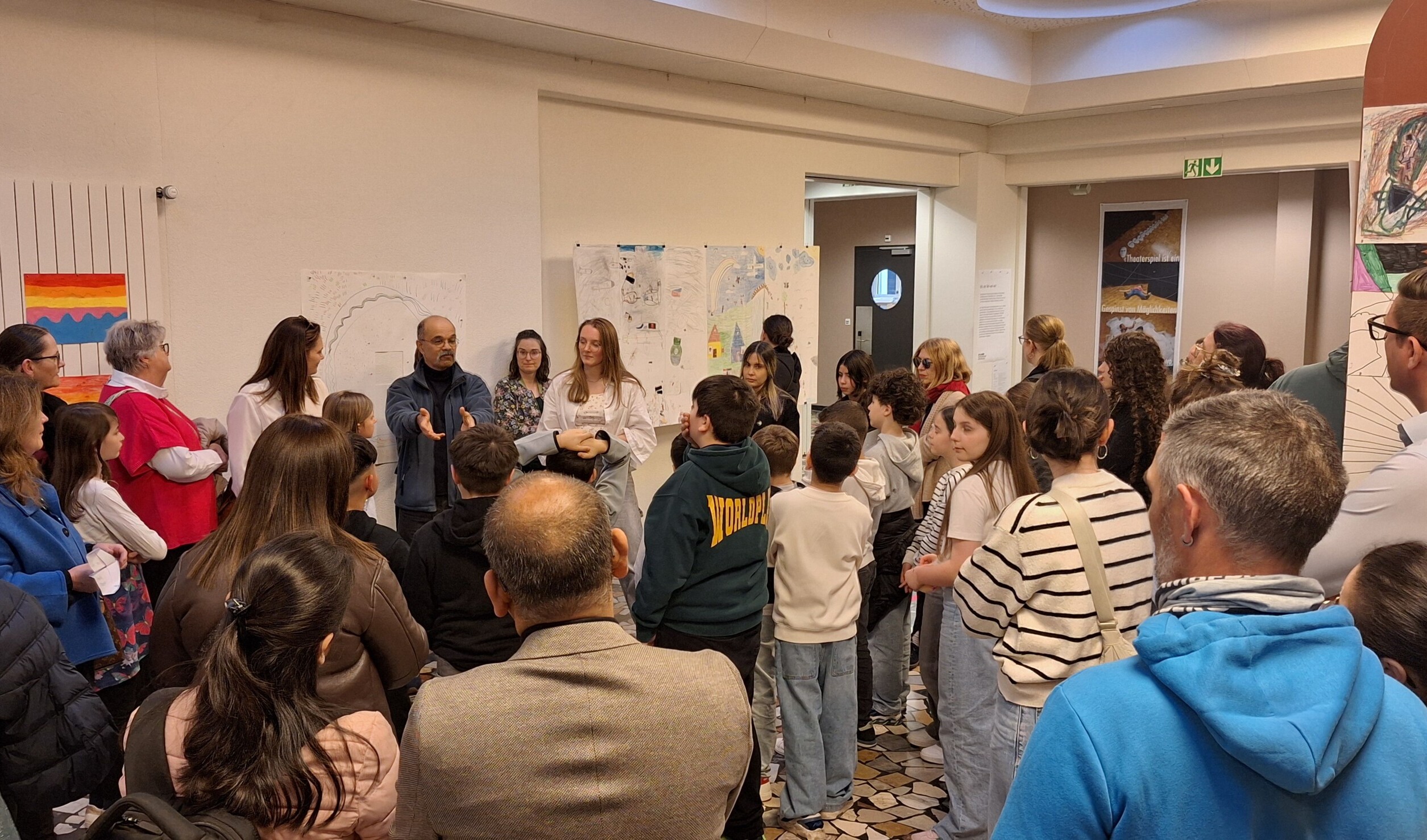 Zur Eröffnung fand am 20. März 2026 eine Vernissage mit 120 Besucherinnen und Besuchern statt. Mit Reden, einer Performance gegen Krieg einer 3./4. Klasse sowie moderierten Gesprächen wurde den Anwesenden die Arbeiten der Schüler*innen nähergebracht. Drei Schulklassen hatten sich davor während drei Wochen zusammen mit den Kunstschaffenden Anđela Rončević, Nikola Ilić und Parvez mit Identität und Gemeinschaft auseinandergesetzt und ihre Gedanken gestalterisch in unterschiedlichen Formaten und Medien umgesetzt.