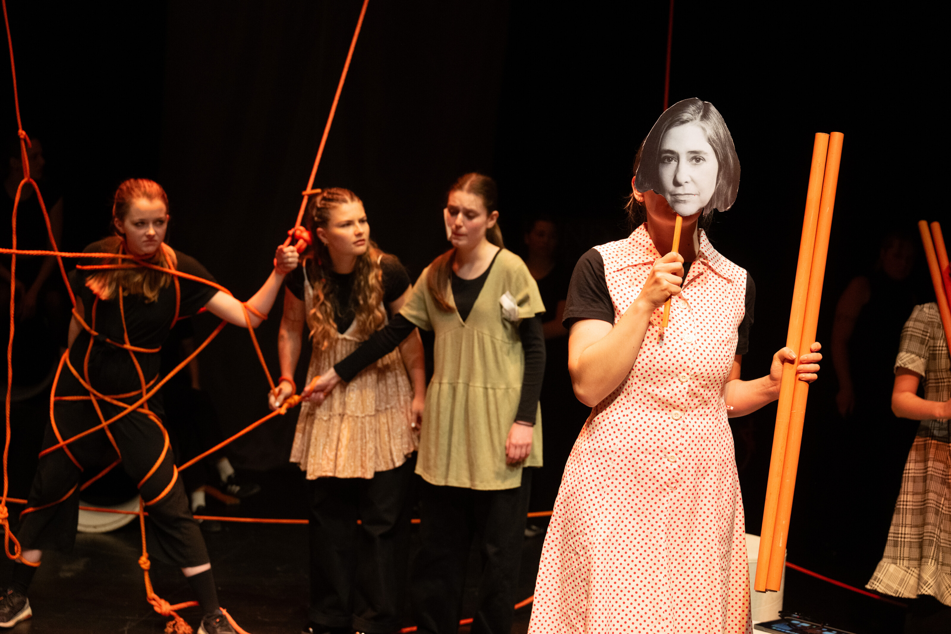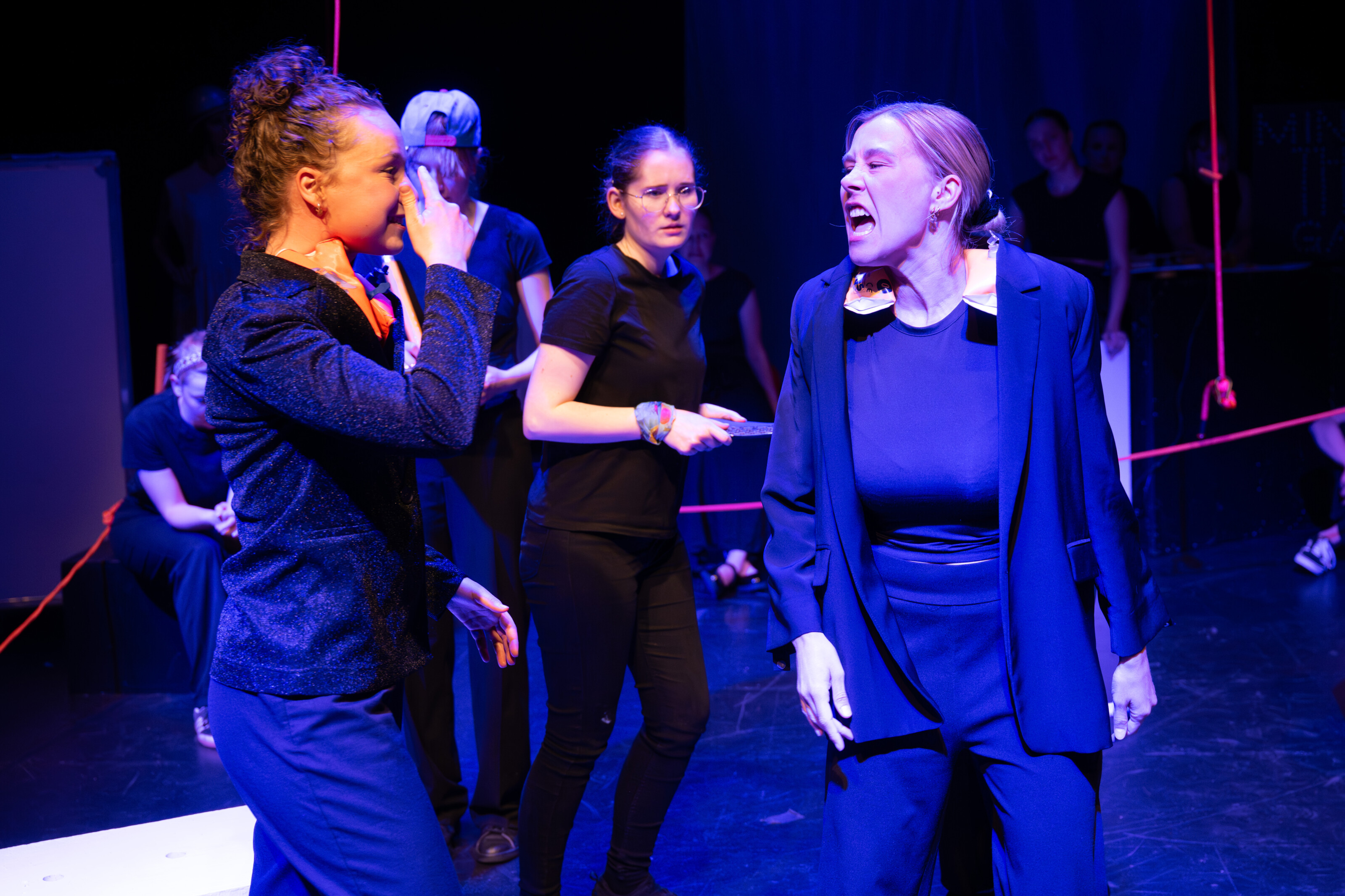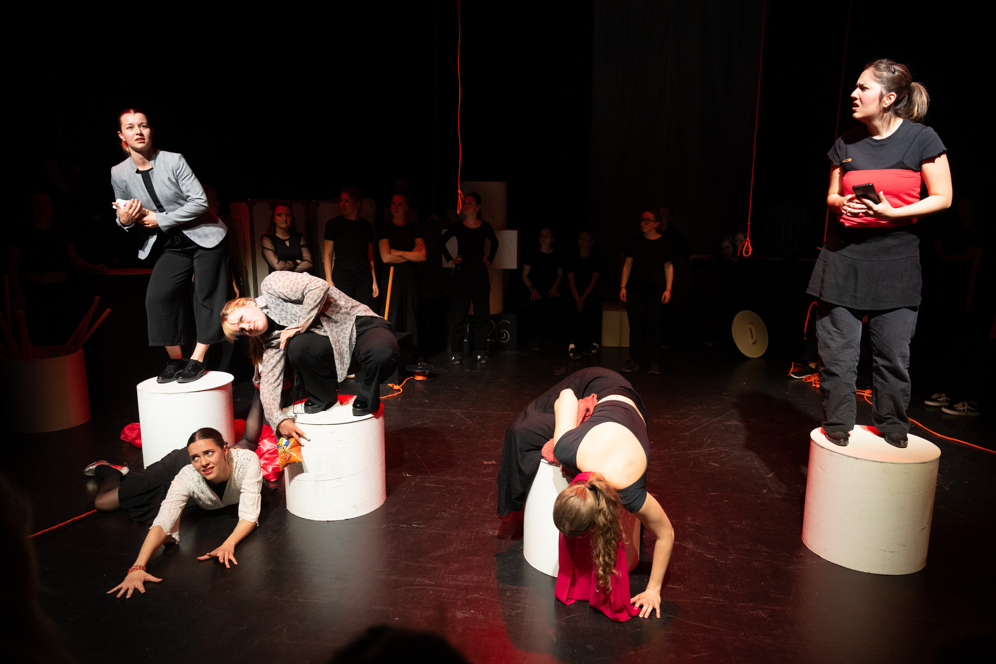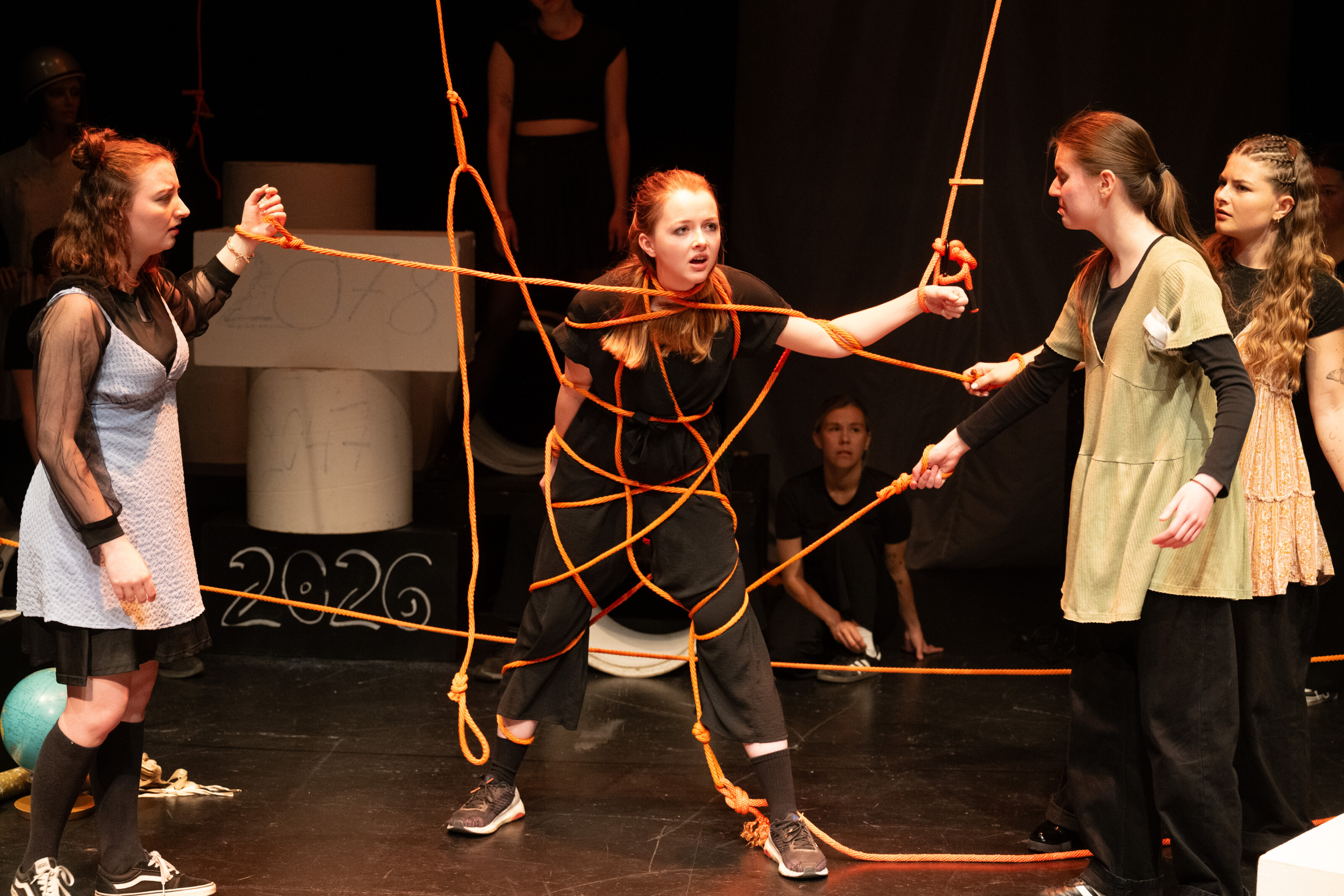 Besonders eindrücklich ist die künstlerische Umsetzung: Mit Choreografien, Musik und starken Bildern gelingt es den Darstellerinnen, komplexe Inhalte sinnlich erfahrbar zu machen. Eine Szene zeigt etwa eine Frau, die sich zunehmend in Seilen verstrickt, ein kraftvolles Sinnbild für gesellschaftliche Erwartungen und Zwänge. Solche Bilder bleiben im Kopf und laden zur Reflexion ein.