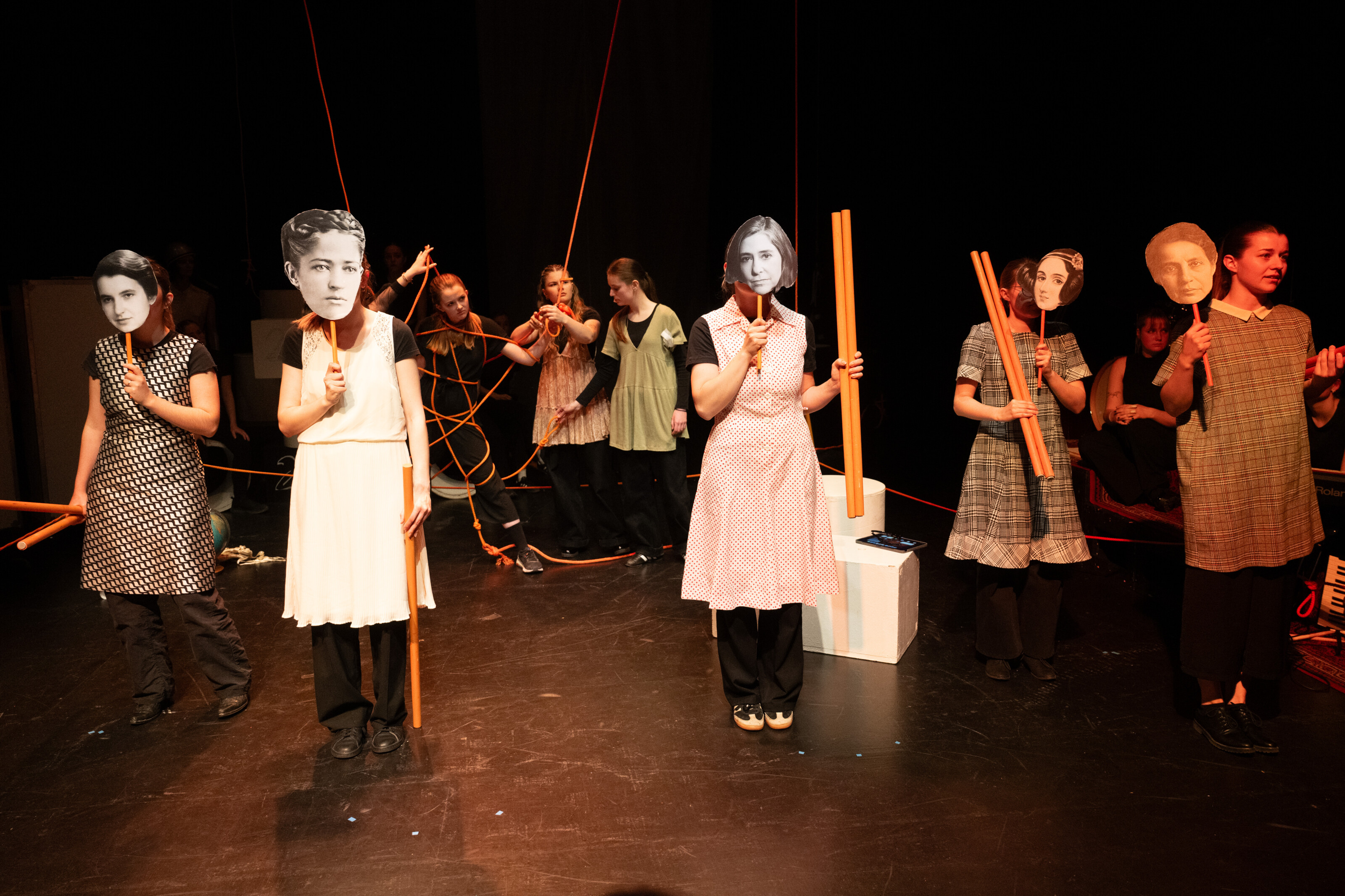 Im Zentrum steht eine Gruppe von Frauen, die sich in einer Denkwerkstatt mit Fragen rund um Gleichberechtigung auseinandersetzt. Sie recherchieren, diskutieren, musizieren, entwickeln Szenen und erfinden spielerische Ansätze, um neue Perspektiven zu erkunden. Daraus entsteht ein vielschichtiges Bühnenstück, das persönliche Erfahrungen der 21 Studierenden mit gesellschaftlichen Themen verbindet.