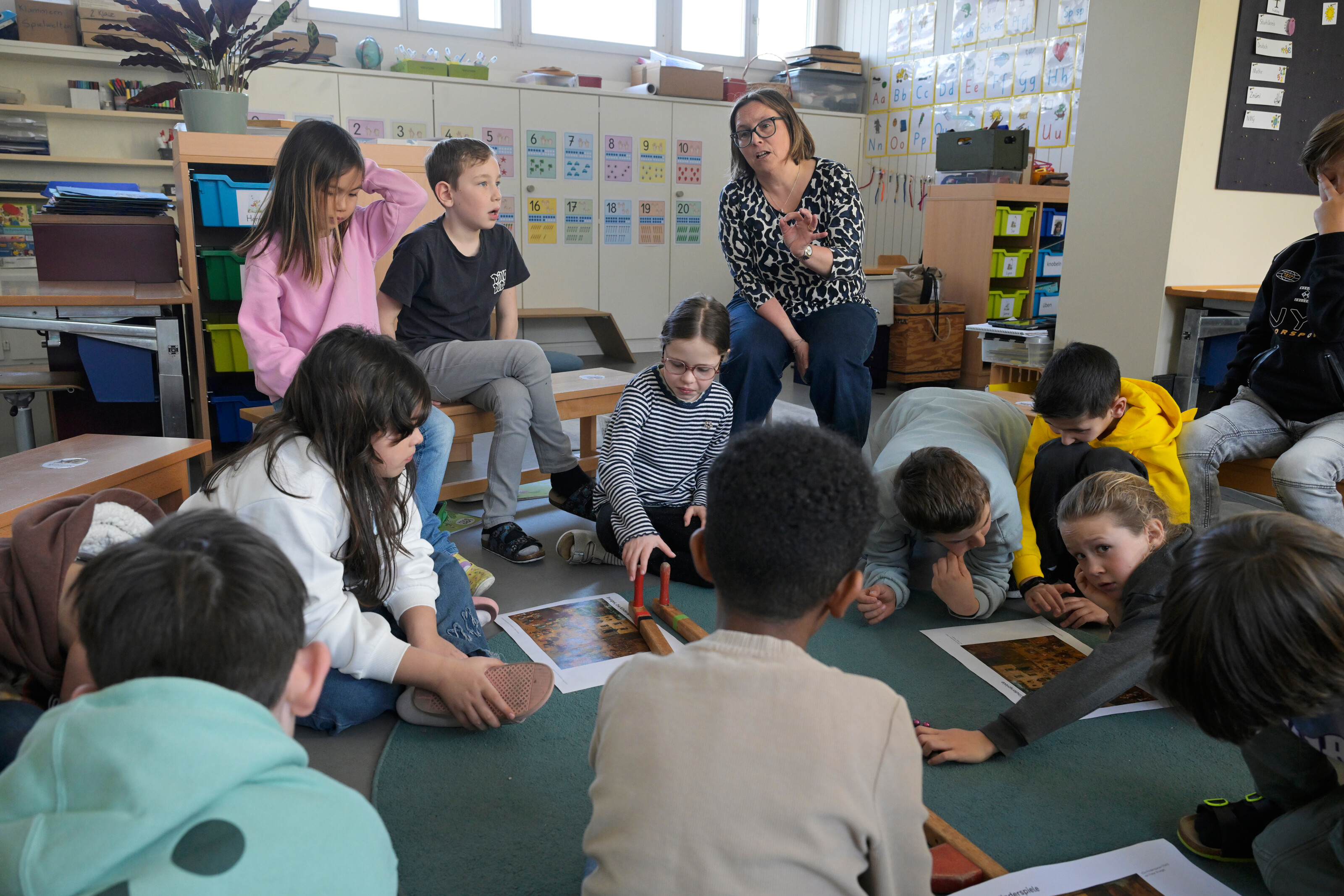 Ein besonderes Augenmerk liegt dabei auf kleinen Spiel-Lernumgebungen. In der Klasse von Esther Kurmann entstand beispielsweise ein kleiner Recyclinghof: Die Kinder schlüpfen in unterschiedliche Rollen, bringen als Kundinnen und Kunden Abfall oder beraten als Mitarbeitende zur richtigen Sammlung und Sortierung. Ergänzend dazu eignen sie sich mithilfe digitaler Slideshows Fachwissen etwa zum Kompostieren oder zum Recycling von Aluminium an. Auf diese Weise wird das Spiel zunehmend sachgerechter und sprachlich differenzierter.