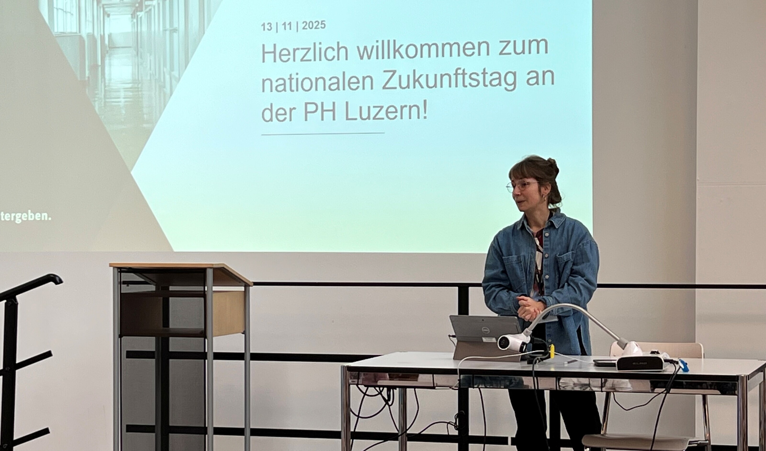 Am Nationalen Zukunftstag (13. November 2025) waren 48 Kinder an der PH Luzern zu Gast. Nach einer Einführung mit einem spielerischen Rundgang durch den PH-Standort Sentimatt und einer theatralischen Bekanntmachung mit den verschiedenen Berufen, die an der PH Luzern ausgeübt werden, belegten die Kinder eines der drei Angebote: Begleitung eines Elternteils bei der täglichen Arbeit, Programmieren eines Roboters für Arbeiten in der Stadt der Zukunft (für Mädchen) sowie Unterrichten an der Schule Ballwil (für Knaben).