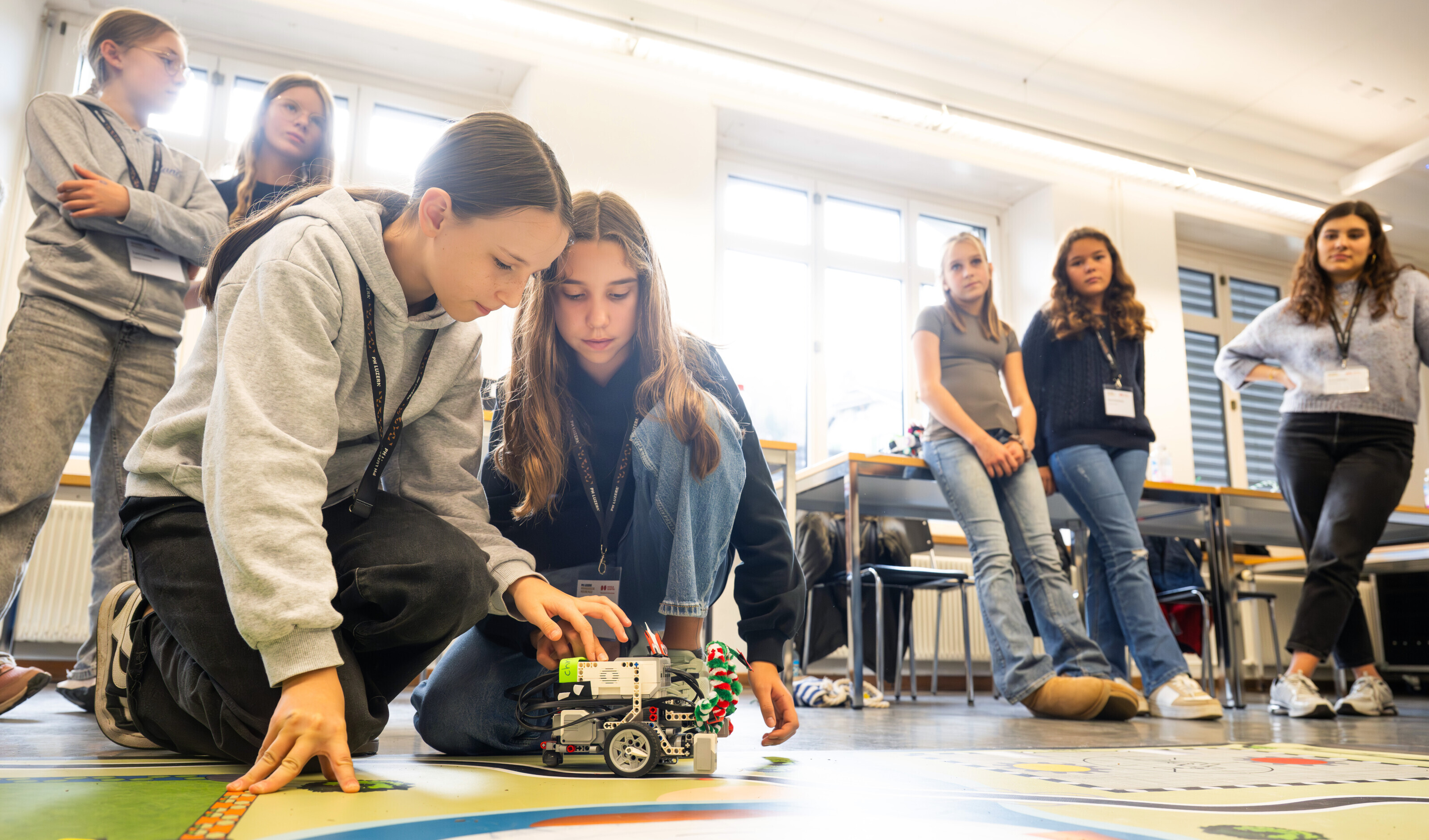 Bei der Programmierung der Roberta-Roboter machten die Mädchen besondere Erfahrungen. «Am Anfang schien das unmöglich, weil so viel und so kompliziert. Dann aber stellten wir fest: Mit gutem Teamwork kommt man gut voran und ans Ziel», erzählte eine Teilnehmerin und bilanzierte den Tag als «mega spannend und voll cool». Ihre an diesem Tag neu gewonnene Kollegin ergänzte – in Erinnerung daran, dass ihr Roboter den Teppich mit symbolisierten Strassen und Häusern etwas gar schnell verlassen hatte (aber immerhin das mitprogrammierte Lied spielte und die dazugehörige Pirouette drehte): «Es ist vielleicht besser, wenn man nicht zu viele Arbeiten zu schnell an Roboter überträgt. Lieber genügend Zeit lassen mit Programmieren…»